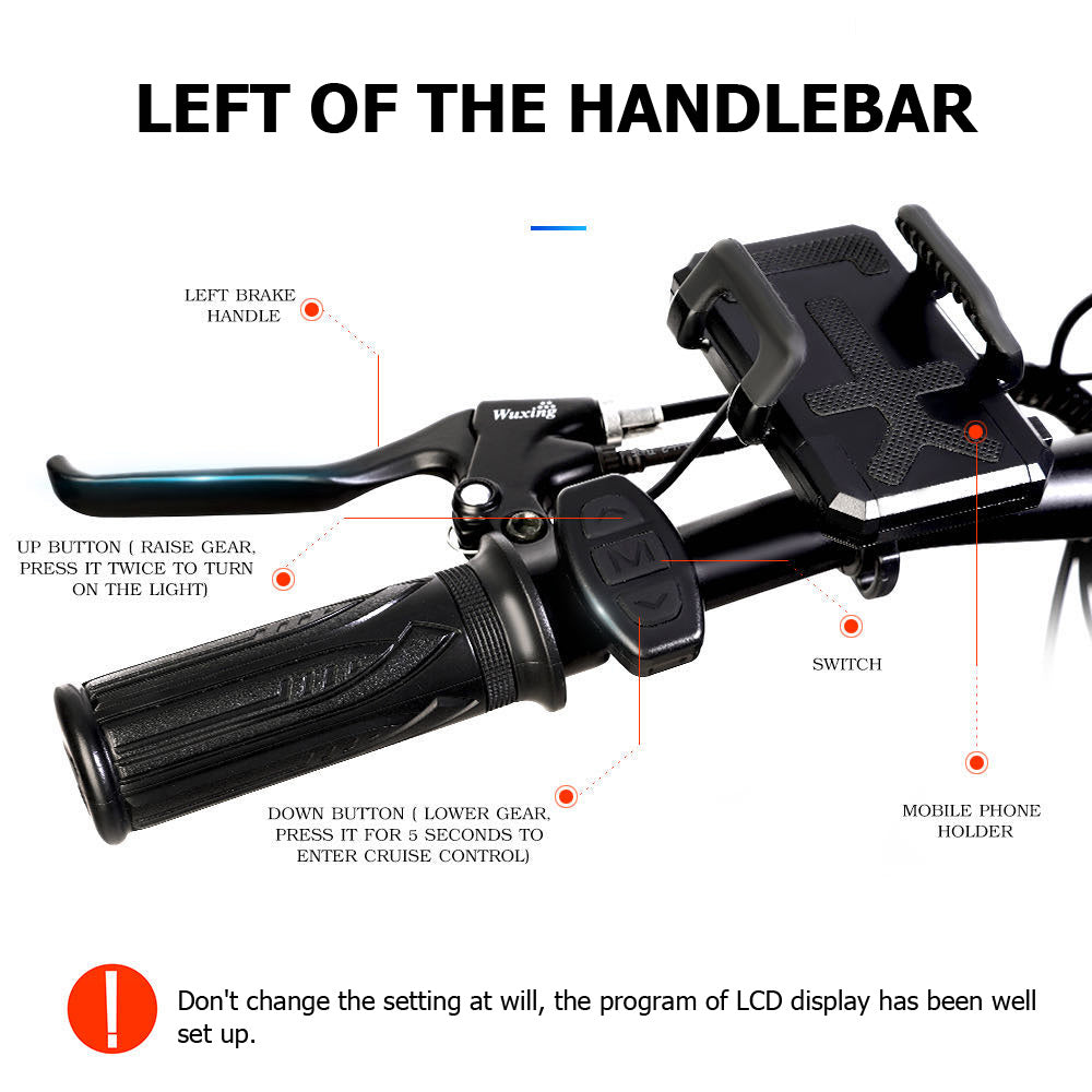 Trois modes de conduite : [Mode d'assistance à la pédale] - Le moteur vous assistera avec une puissance continue lorsque vous pédalez sur le vélo. [Mode entièrement électrique] - Il suffit de tourner l'accélérateur (pas besoin de pédaler). [Mode manuel] -Appuyez sur la pédale comme sur le vélo ordinaire.