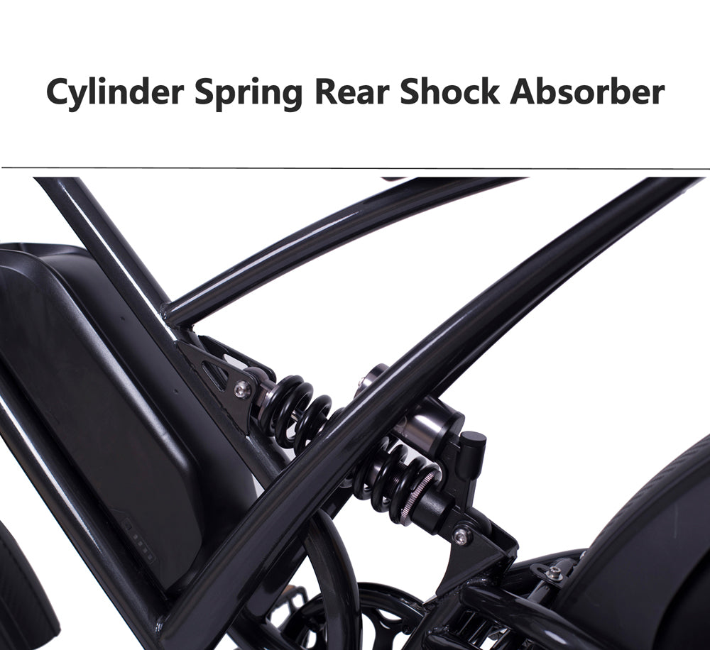 Configuration : les amortisseurs avant et arrière vous offriront une expérience de conduite plus confortable. Système de frein à disque avant et arrière réduisant efficacement la distance de freinage. Le système de transmission Shimano est plus durable et peut changer les vitesses plus facilement. Les gros pneus de 20 * 4,0 pouces rendent le cyclisme plus stable pour s'adapter à toutes les conditions de route telles que la neige, la route, la plage et la route de montagne.