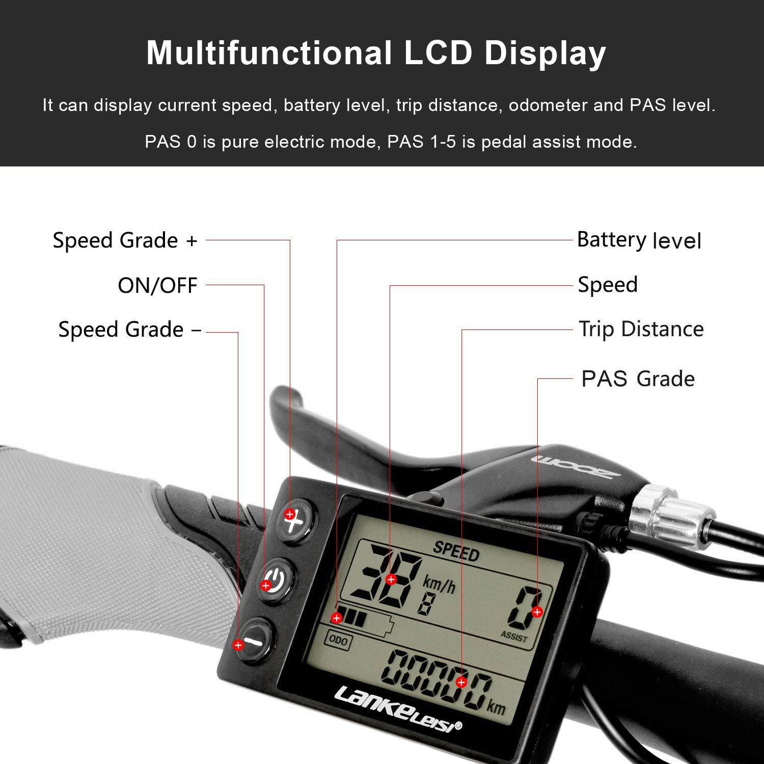 Écran LCD : l'écran peut enregistrer votre état de conduite de manière plus intuitive, comme la vitesse actuelle, le niveau PAS, la distance parcourue, le niveau de la batterie, etc.