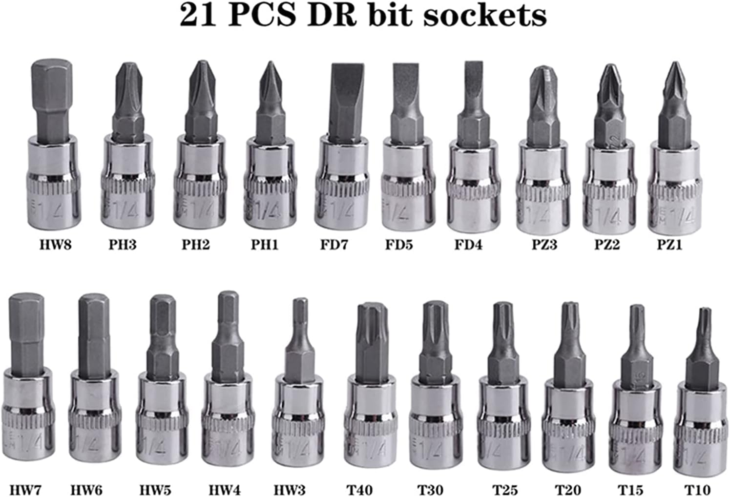 2. 13 1/4 "六角ソケット: 4-4.5-5-5.5 - 6-7-8-6-7-8-12-13-14 mm (50 bv30 クロムバナジウム鋼)
