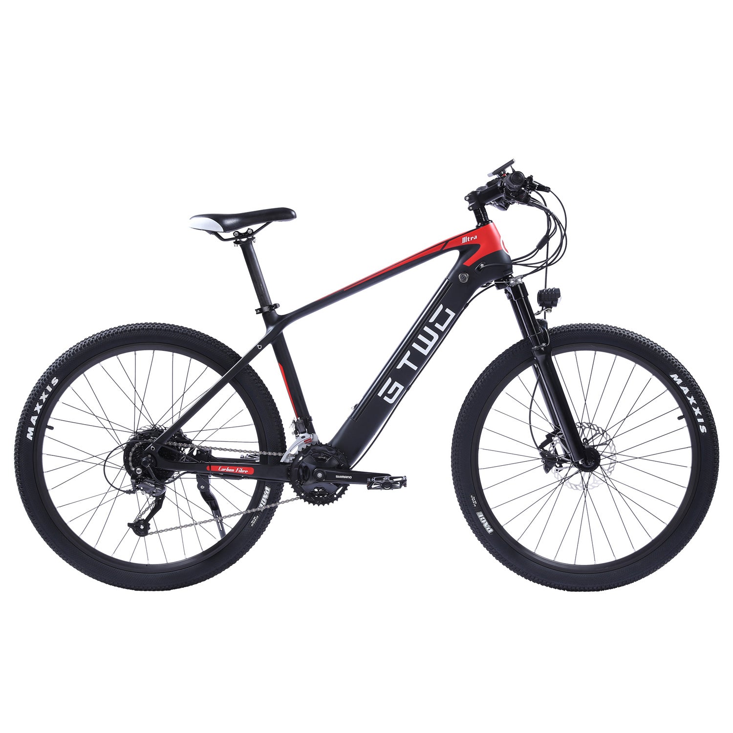 27.5 Inch Electric Carbon Fiber Bike, adpopt 350W / 500W Motor, Air Shock Absorber Front Fork, 27 Speed Mountain Bicycle