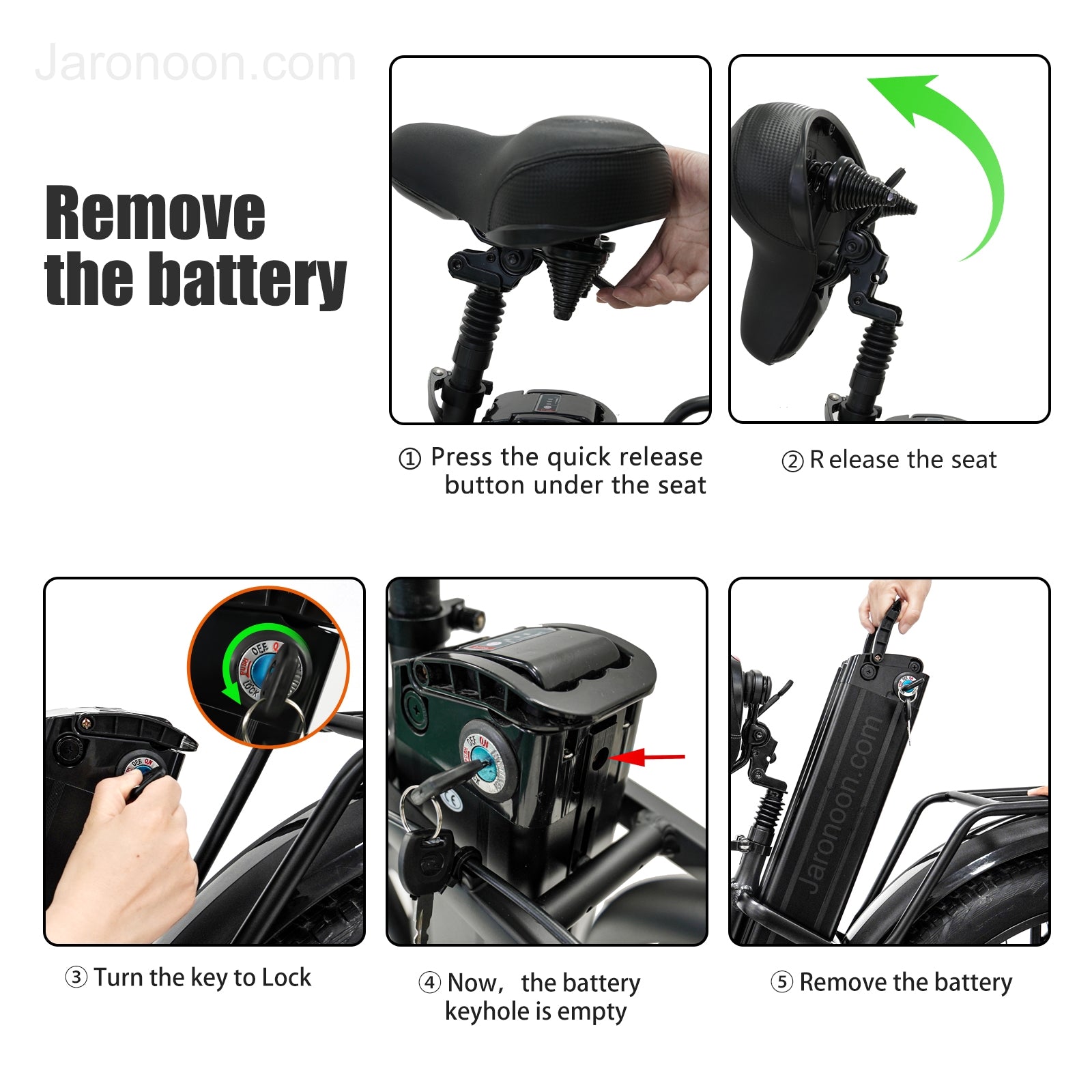 Elsystem: Elcykeln är utrustad med en stabil 750W höghastighets borstlös motor och avtagbart litiumbatteri som har en lång uthållighetssträcka. Du kan ladda batteriet direkt på cykeln, eller ta ut det för att ladda.